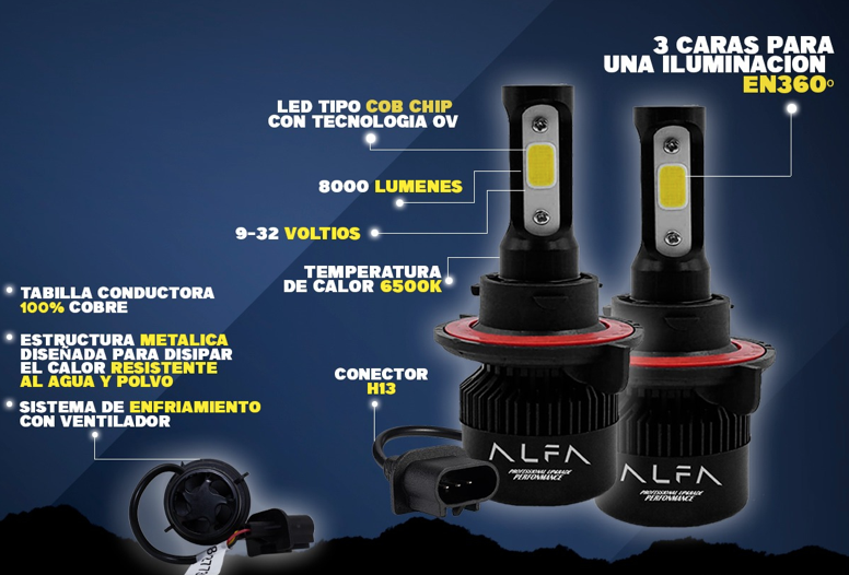 FOCO LED ALFA 3 CARAS 8000LM H7 PAR
