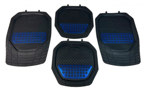 TAPETE TIPO CHAROLA NEGRO CON CROMO AZUL CARBÓN 4PZ JUEGO