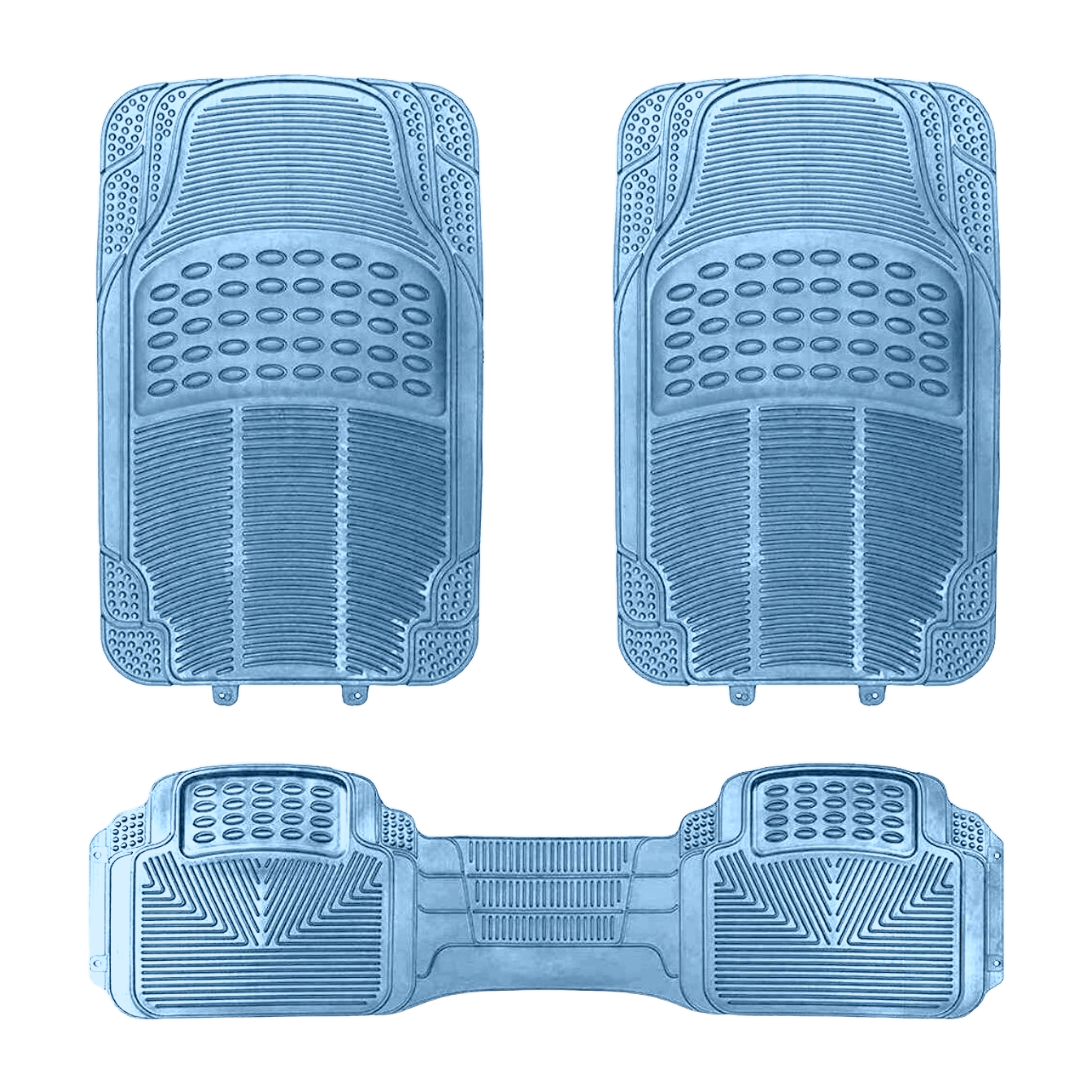 TAPETE TIPO CHAROLA NEGRO CON CROMO AZUL CARBÓN 4PZ JUEGO